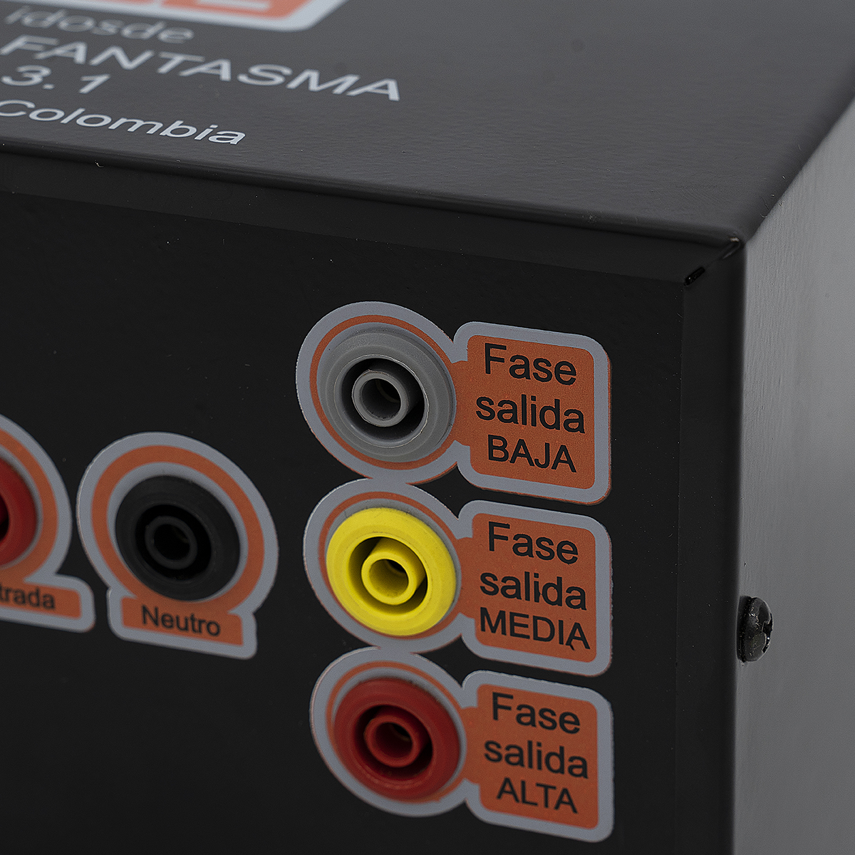 La fuente posee **tres fases**, lo que le permite hacer fluir corriente a través de cada uno de los circuitos de corriente de un medidor de energía eléctrica **monofásico o polifásico**. A su vez, genera en los circuitos de tensión del medidor una caída de potencial del nivel de tensión a la que está conectada la carga fantasma. Esta flexibilidad la hace ideal para pruebas con medidores **monofásicos, bifásicos y/o trifásicos**.
